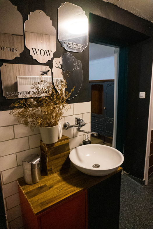 Budafok borászati hagyományai ihlették a belső tereket. Remek kiindulópont felfedezni a kerület borászatait és megkóstolni a helyi borokat.